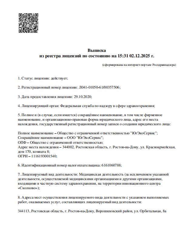 Каждый пациент проходит полное обследование.
